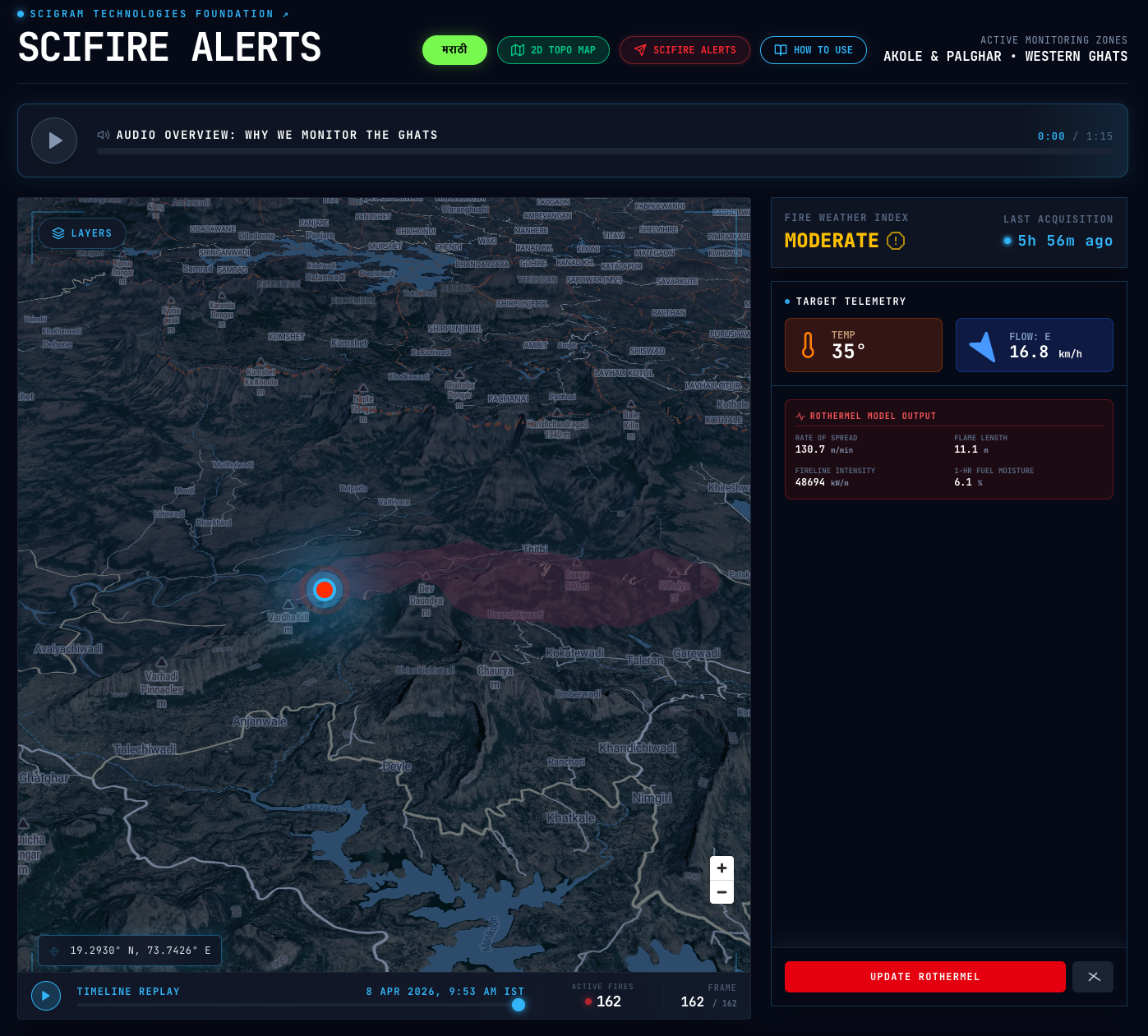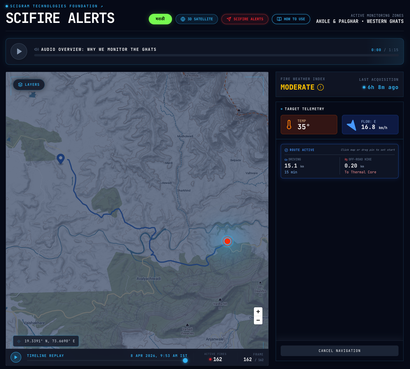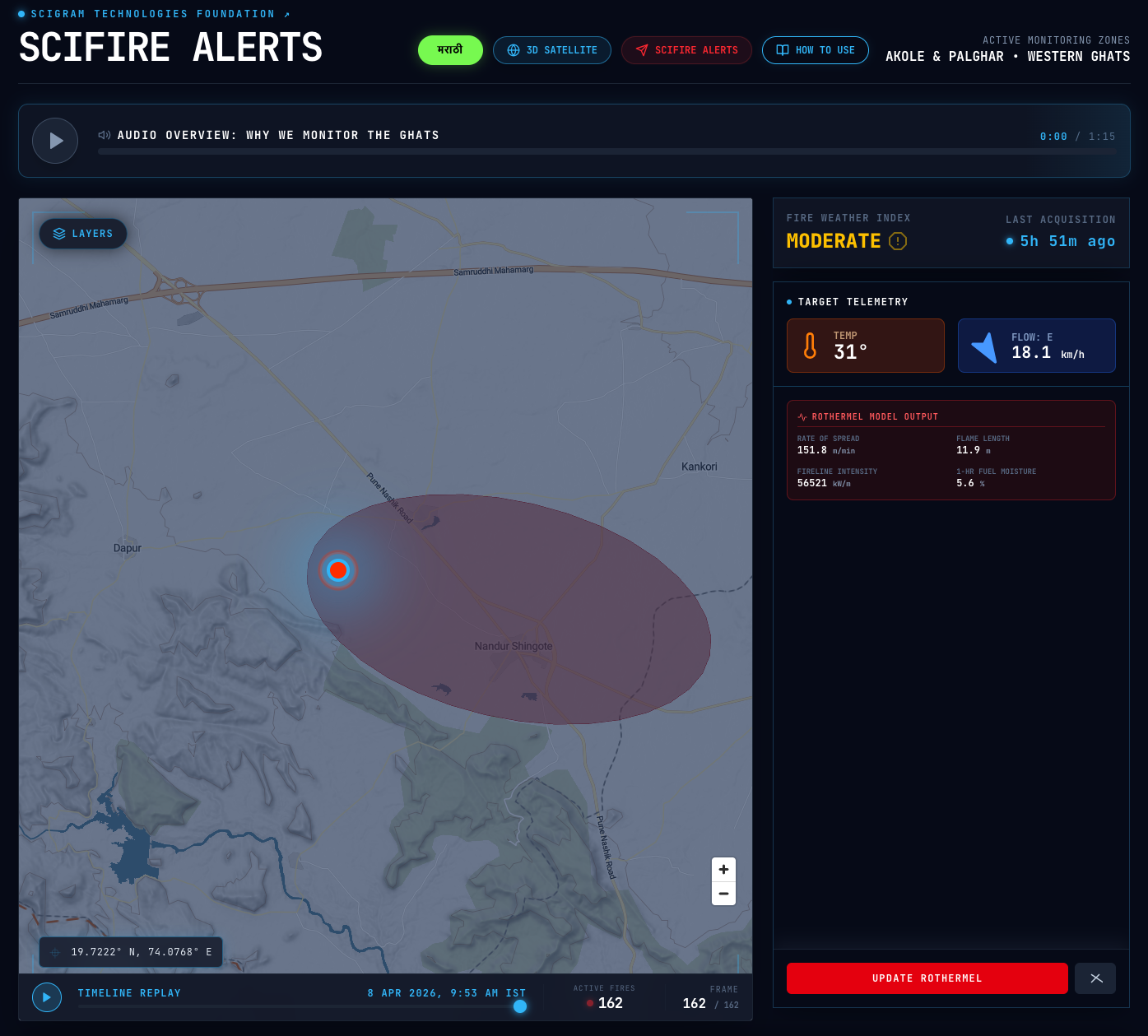 In our previous update, From Satellites to Soil, we outlined the foundation of the Akole Fire Watch. Our initial goal was bringing visibility to forest fires in the Western Ghats by connecting satellite data with community reporting. Building that first iteration taught us a great deal about the realities on the ground. It also highlighted a clear limitation. Simply mapping a fire after it has started is passive. True conservation and protection require anticipation.