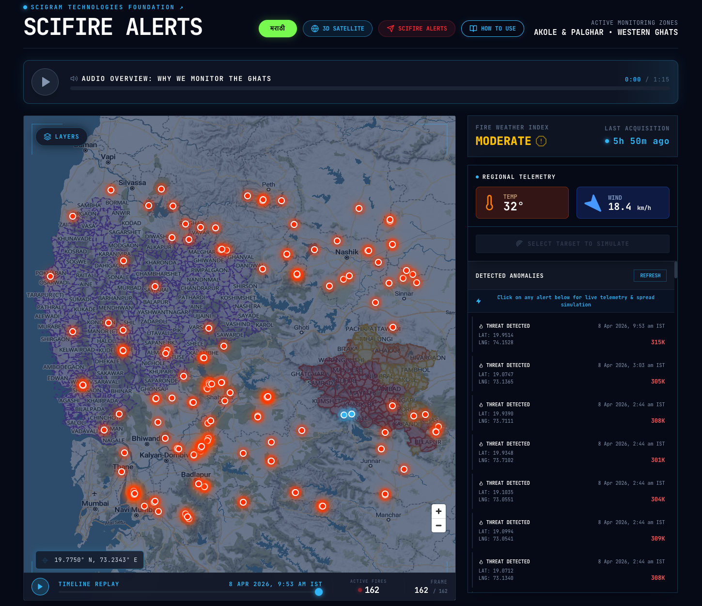 Technology only works if the community can use it. The entire SciFire Alerts platform is now fully bilingual, offering seamless toggling between English and Marathi. Furthermore, we have integrated crisp audio explainers in both languages, breaking down complex data into understandable insights for users with varying levels of digital literacy.